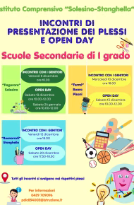 Ecco le date e gli orari degli incontri di presentazione dei plessi e degli Open Day per le nostre Scuole Primarie